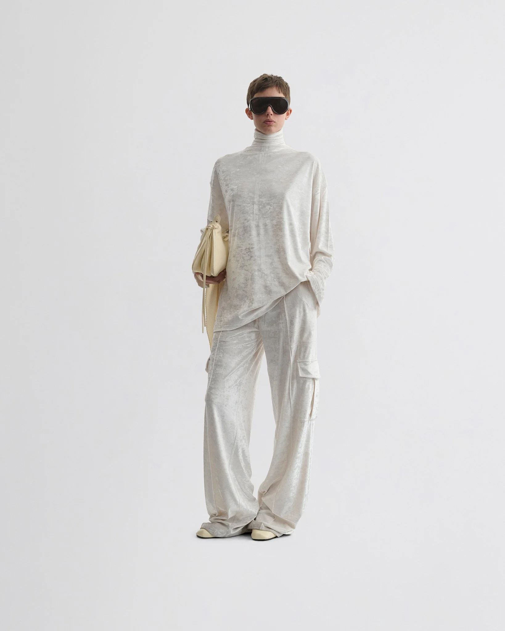 LIQUID CARGO TROUSERS | white crushed velvet